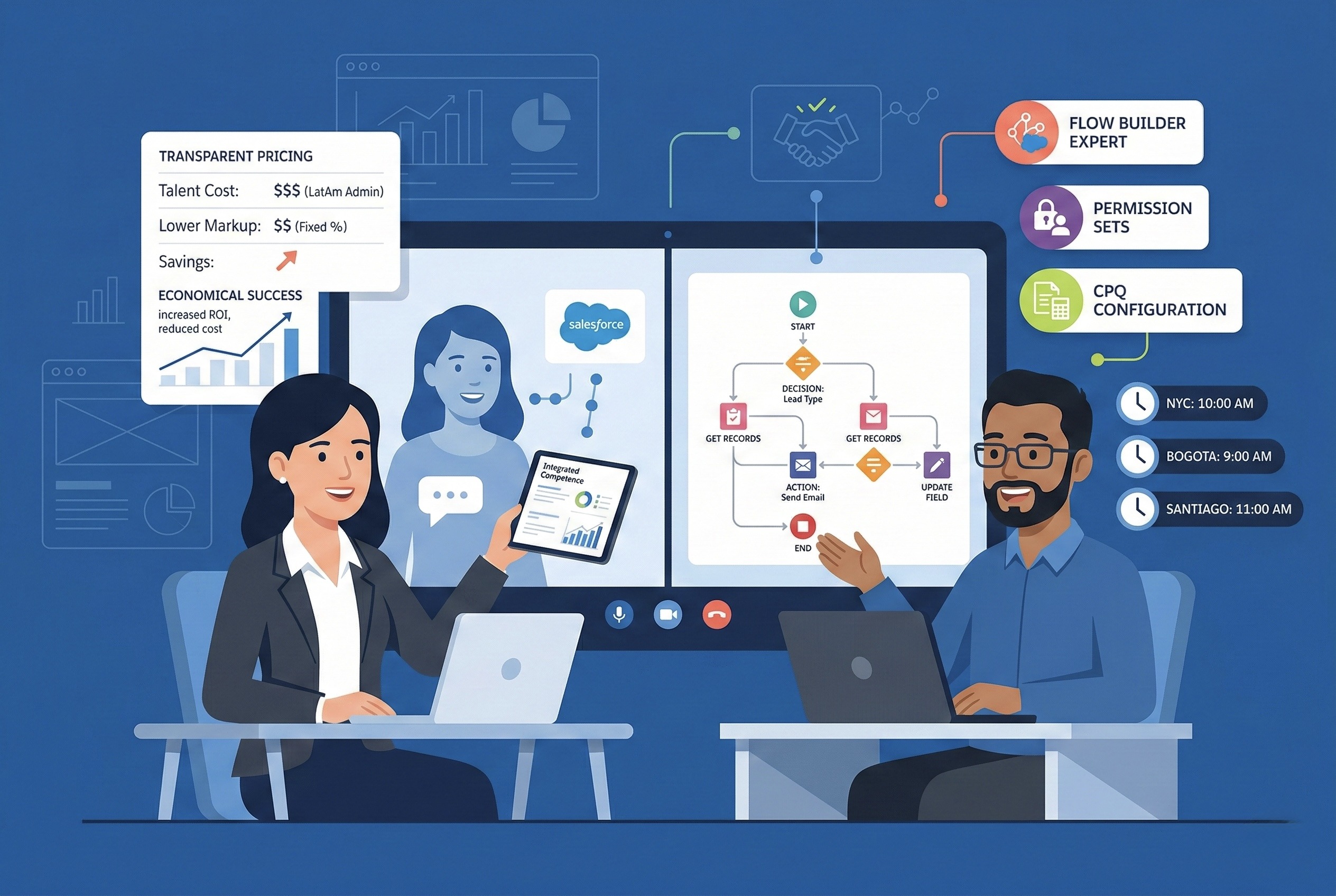 That works because LatAm-based Salesforce admins operate in US time zones, communicate in fluent English, and in most cases have worked directly with US clients before. The cultural alignment is real. It’s why JPMorgan built a 3,800-person operation in Argentina and is adding 1,500 more. Core operations, not call center work.